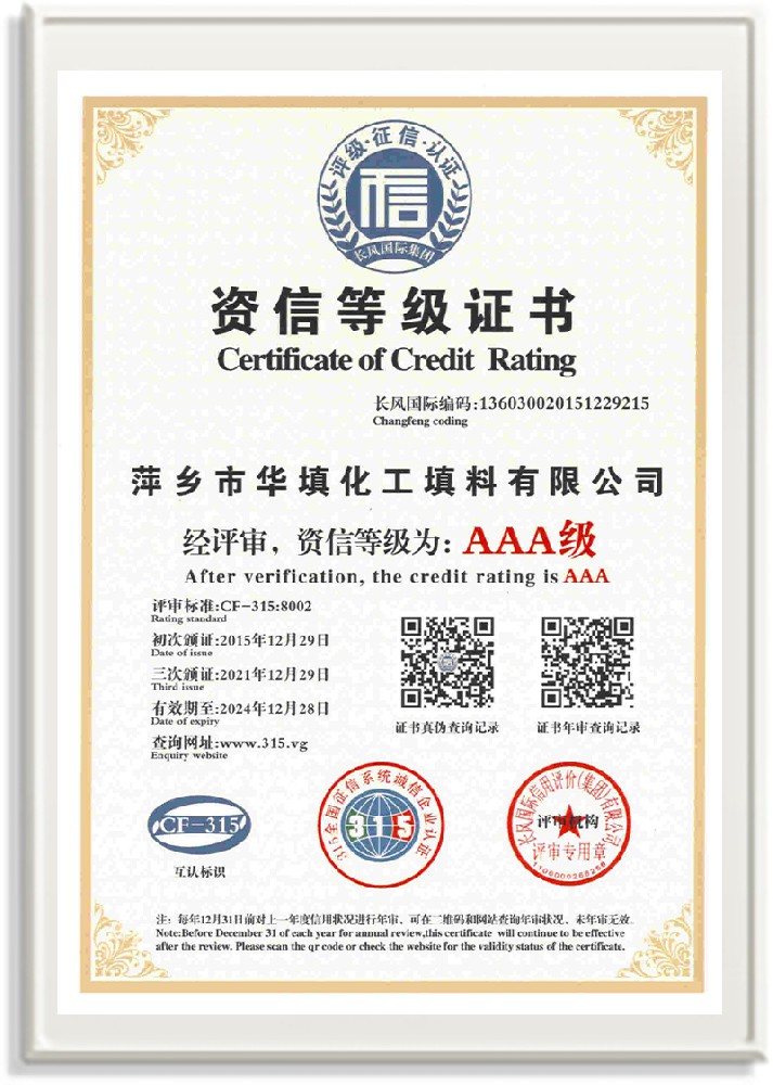 萍鄉市華填化工填料有限公司,位于320國道、109國道、浙贛鐵路、昌金高速公路貫穿其中,交通便利,是江西西部一顆燦爛明珠,創(chuàng)建于20世紀70年代初期,是中國石油天然氣股份有限公司“能源一號網”會員企業、中國石化物資采購電子商務網絡和中國海洋石油總公司采辦業務系統成員單位,是上海大學江西材料基因組工程產業研究院工業陶瓷產業創(chuàng)新聯盟基地,且通過ISO9001:2015質量管理體系、ISO14001:2015環(huán)境管理體系、ISO45001:2018職業健康安全管理體系認證的化工填料生產企業。公司擁有陶瓷、塑料、金屬填料、催化劑、活性氧化鋁、分子篩等產品生產線,現有固定資產3616萬元,占地面積3.8萬平方米。公司具有悠久的生產歷史、雄厚的技術力量和先進的生產工藝設備,可生產工業瓷球(支撐劑)、陶瓷、金屬、塑料質的規(guī)整、散堆化工填料及分子篩、催化劑、生化濾料、活性氧化鋁、石化助劑、活性炭、環(huán)保材料、耐火材料等系列的200多種規(guī)格型號產品。